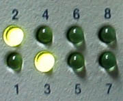 ![]() 10BaseTのHUBについている、ポートの接続/正常動作を示すランプ. 数字はポート番号 |