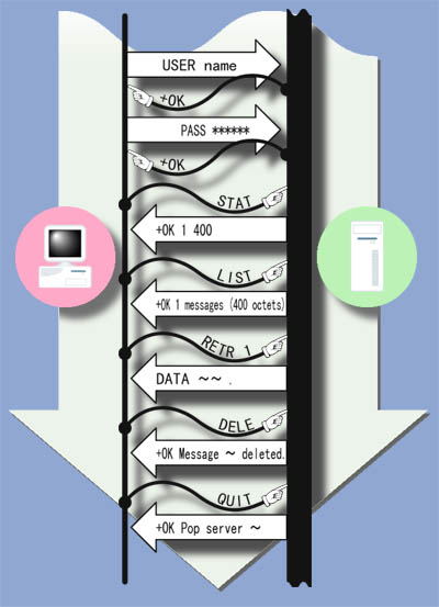 POP3では、最初にUSER、PASSコマンドによりユーザ認証を行います。
